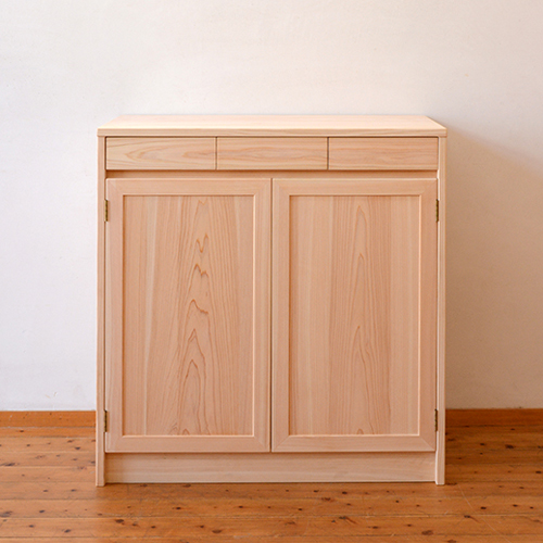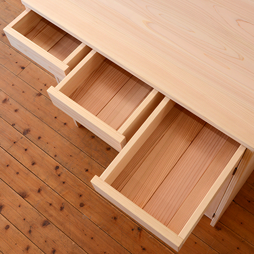 材 質:国産桧(ひのき)無垢材〔節少なめ〕 本体裏板・引出内部は杉無垢材使用