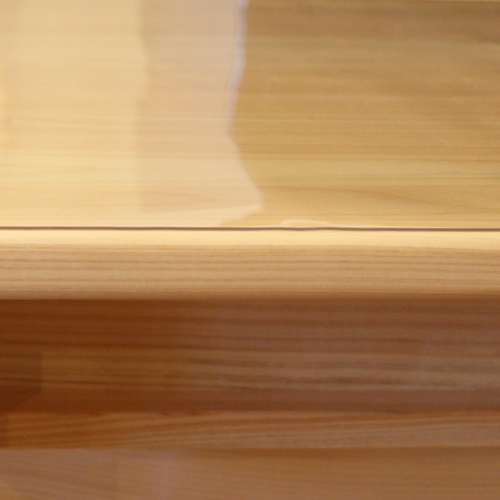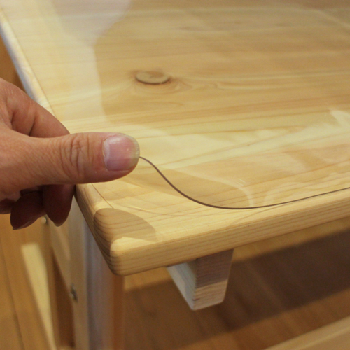 ごくシンプルな透明ビニールマットなので、木の質感を損ねずに気軽にお使いいただける事と思います。