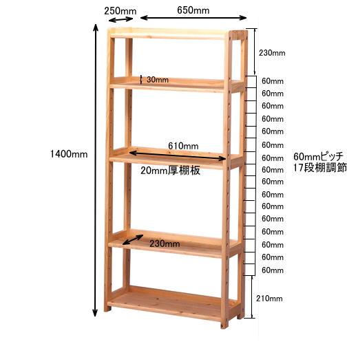ひのきオープンラック 65 FSスタンド 収納棚 65w×25d×140h 天然木製 無垢 オイル塗装 国産