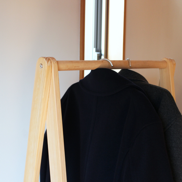 いたってシンプルがゆえに、ナチュラルな質感が際立つハンガーラックです。