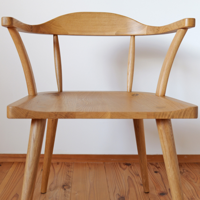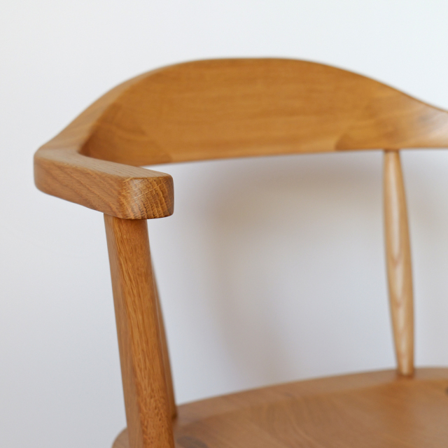 硬質で木目が美しく、家具材としても人気の高いオーク!オーク材を贅沢に使い、体を包み込むラウンドデザインが特徴的なアームチェアです。