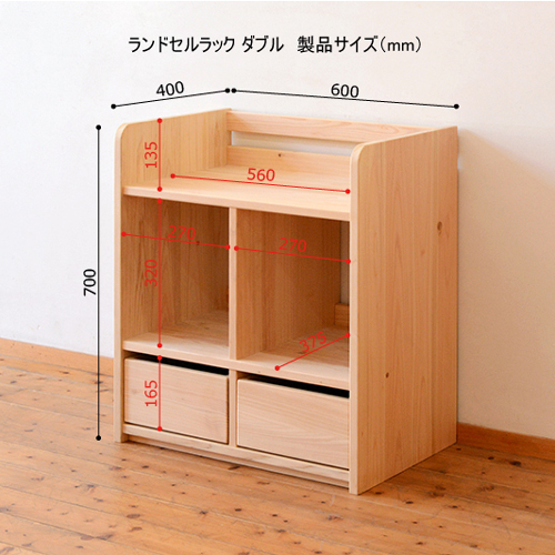 何かと散らかりがちな机まわりの整理整頓にとっても便利なランドセルラックです。 【ダブル】は、上段にランドセル置き、中段はA4ファイル縦置き本棚、下段は収納BOXの構成。M型の机(奥行60cm)に合わせてもピッタリ置ける設計。 収納BOXは標準で2個付いていますが、中段でも使えるので、必要に応じてオプションで追加も可能!