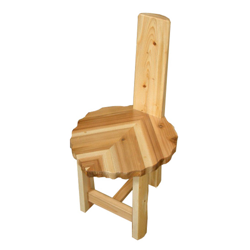 杉の半割丸太を使用したハンドメイドの木の葉チェアは、2つと同じ物のない野趣あふれる椅子です。