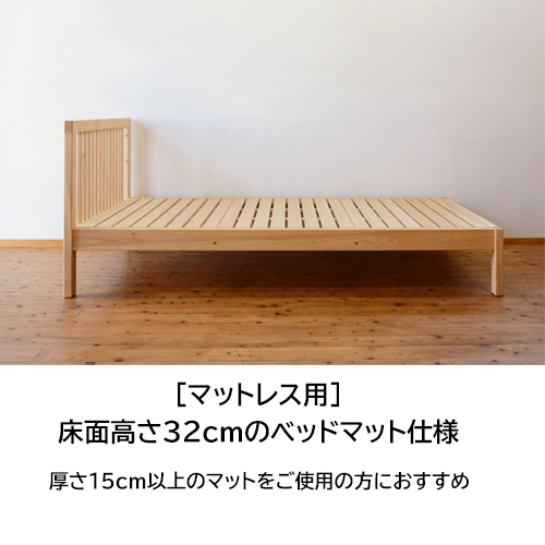 マット(別売り)の使用を考えてヘッドボードを高くしたヒノキシングルベッド。 癒し効果のある桧の香りに包まれて、まるで森林浴のようにゆっくりと休んでいただけるシンプルベッドです。