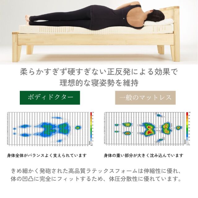 柔らかすぎず硬すぎない絶妙な弾力で、体圧を理想的に分散。薄くても底つき感が全くなく、深い眠りに必要な正しい睡眠姿勢と無理のないスムーズな寝返りをうつことがでします。