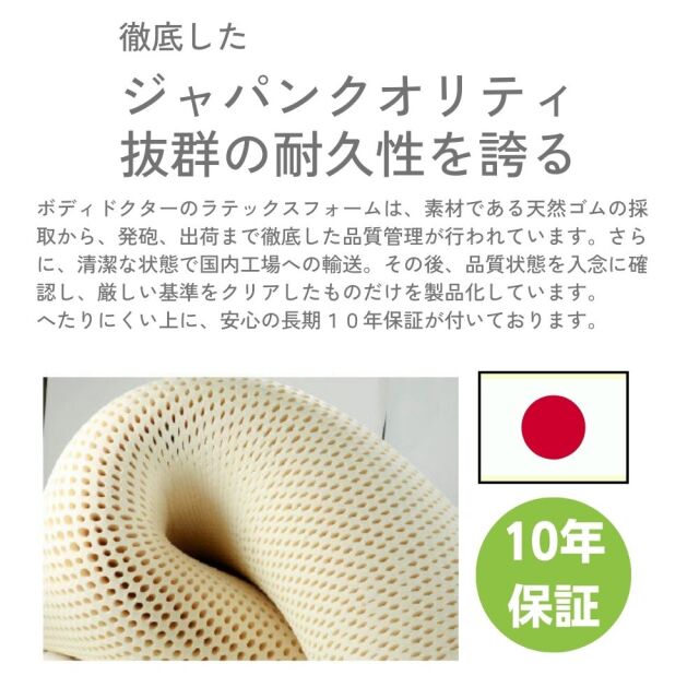さらに、ボディドクターのラテックスフォームは天然素材が持つ生体防御効果による高い抗菌活性や抗カビ活性をもち、いやな臭いを抑え、ダニなどの虫もつきにくい効果が認められています。