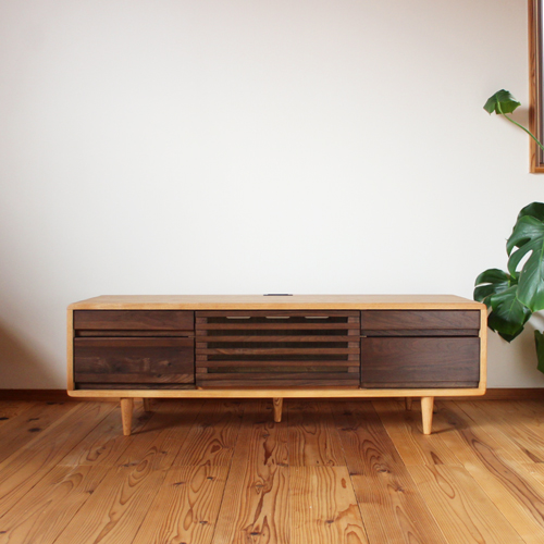 毎日観る大画面テレビやオーディオ機器と共に、リビングの「顔」として末永くお使いいただきたい、高品質な無垢家具TVボード!