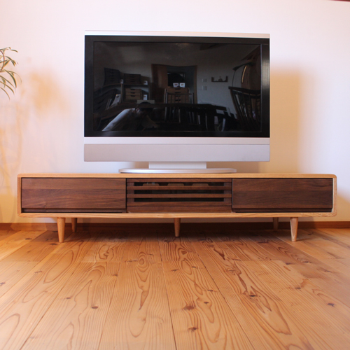 毎日観る大画面テレビやオーディオ機器と共に、リビングの「顔」として末永くお使いいただきたい、高品質な無垢家具TVボード!