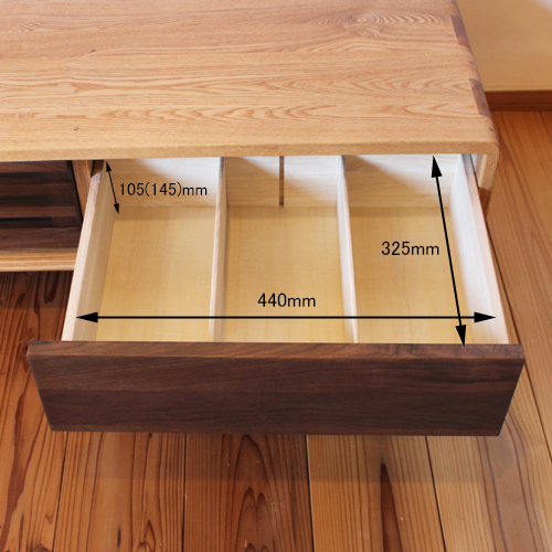 材質:タモ無垢材・ブラックウォールナット無垢材(前面)