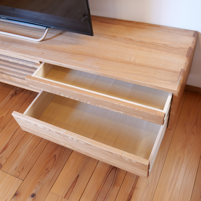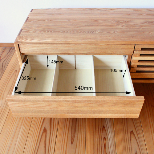 - 素材:タモ無垢材(オイル仕上げ)・引出内部桐無垢材使用・引出底板・裏板は最高ランクのF☆☆☆☆合板使用